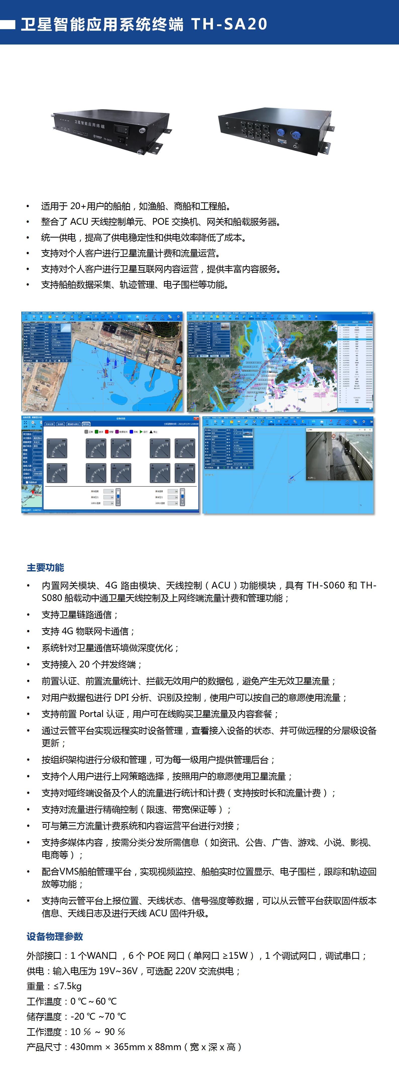 TH-iBox 20 衛星智能網關整合了路由器、本地內容服務器、視頻存儲服務器及視覺AI服務器,配合衛星流量控制系統、計費系統、內容服務、云管平臺、衛星互聯網運營平臺、視頻存儲系統、視覺AI系統及VMS智慧船舶管理平臺,形成了完整的適合于衛星通信場景的衛星互聯網接入、內容分發及運營、視頻監控、視覺AI、軌跡跟蹤管理及定制化行業AIoT船聯網/物聯網的衛星互聯網綜合解決方案。